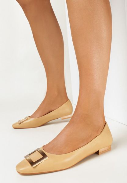 Balerinki Akana na płaskim obcasie, z przodu metalowa ozdoba.