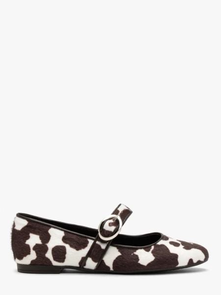 Brązowo-Białe Balerinki Vices w Krowie Łaty w Stylu Mary Jane ze Skórzaną Wkładką Rilaneia