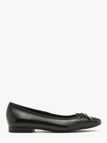 Czarne baleriny z kokardką na cholewce z linii RYŁKO.Model wykonany ze skóry licowej.Podszewka i wyściółka skórzana.Podeszwa płaska.Nosek okrągły.Model posiada ozdobne elementy w kolorze srebrnym.Dystrybutor: Brawo Sp. z o.o. ul. Dworcowa 19, 34-130 Kalwaria Zebrzydowska; sklep@rylko.comKraj pochodzenia: POLSKA