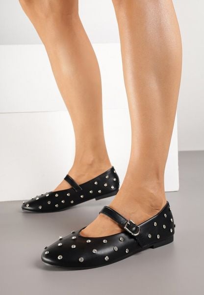 Czarne Balerinki Vices z Ćwiekami Paskiem z Klamerką i Skórzaną Wkładką Riletra