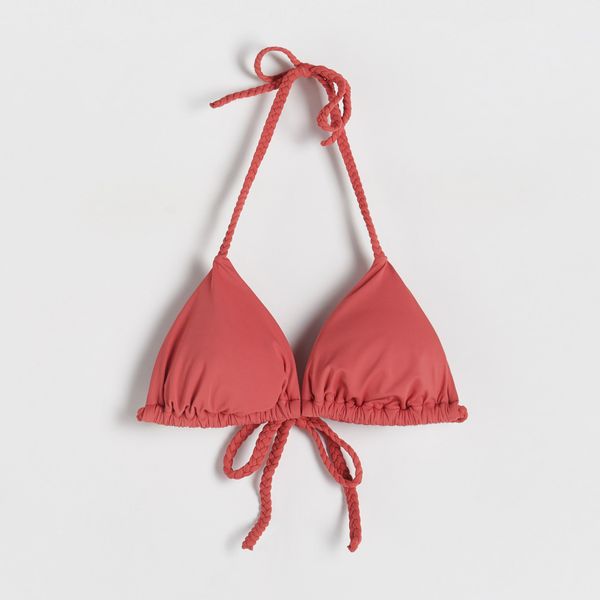 Miękki biustonosz plażowy wykonany z gładkiego materiału.