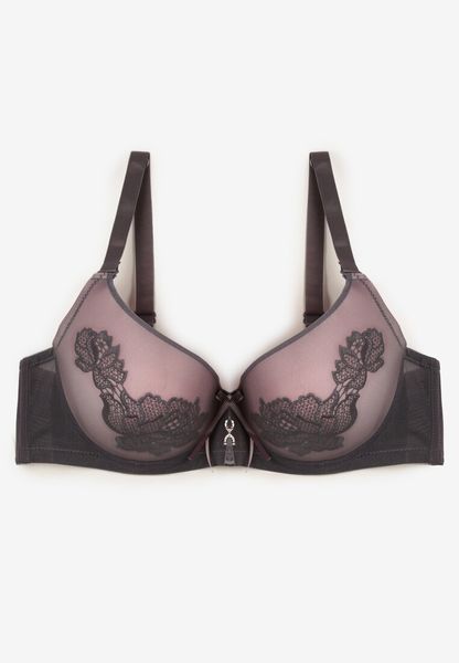 Szary Biustonosz Ozdobiony Koronką Full Cup Pasecia