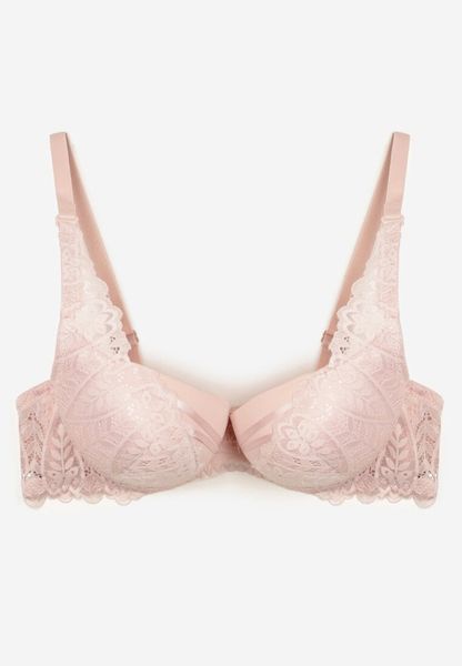Jasnoróżowy Biustonosz Koronkowy z Efektem Push Up Grateria