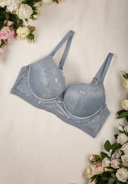 Jasnoniebieski Biustonosz z Delikatną Koronką i Efektem Push Up Bavah