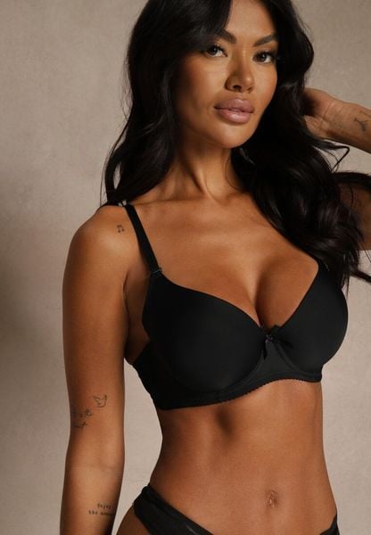 Czarny Gładki Biustonosz o Klasycznym Fasonie Arriethia