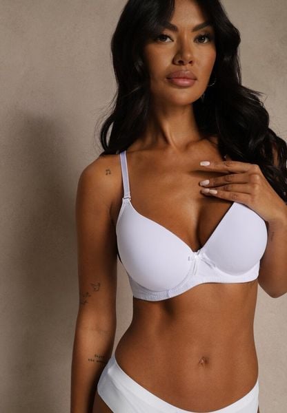 Biały Gładki Biustonosz o Klasycznym Fasonie Zdobiony Kokardką Caloris