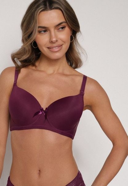 Ciemnofioletowy Gładki Biustonosz Zdobiony Kokardką Ocerien