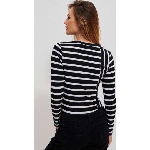 95% POLIESTER 5% ELASTAN 95% POLIESTER 5% ELASTAN, BLUZKA_ BLUZKA LONG, biały, czarny, paski, poliester,, długi rękaw, Dekolt okrągły, dopasowany