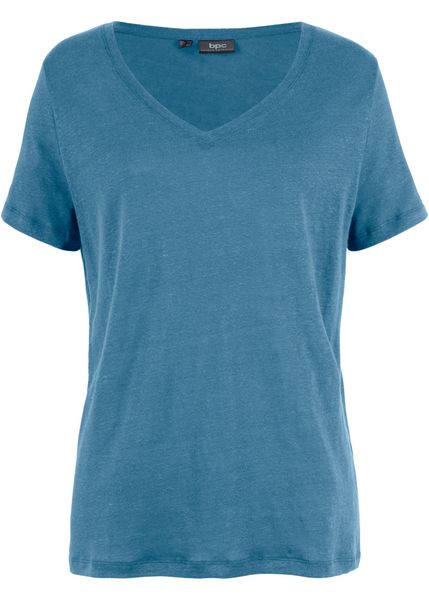 Luźniejszy shirt lniany z dekoltem w serek. Całkowita dł. w rozm. 40/42 ok. 66 cm. Można prać w pralce.