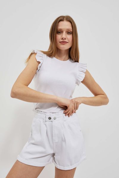 Gładka dopasowana bluzka z falbaną na ramionach biała