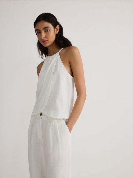 Bawełniana bluzka z dekoltem halter – biały