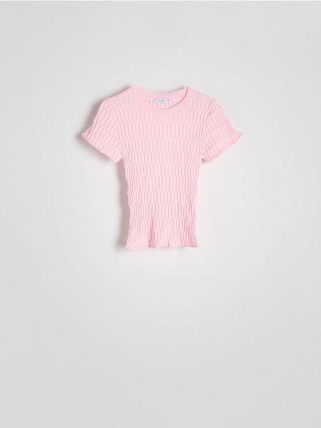 Bluzka o dopasowanym kroju wykonana z dzianiny z wiskozą oraz bawełną.