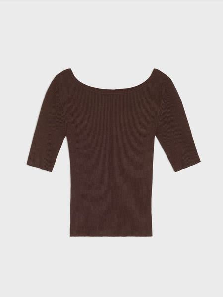 Sinsay – Swetrowa bluzka z krótkim rękawem z wiskozą – brązowy – materiał z wiskozą