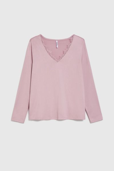 Bluzka z koronkowym dekoltem różowa