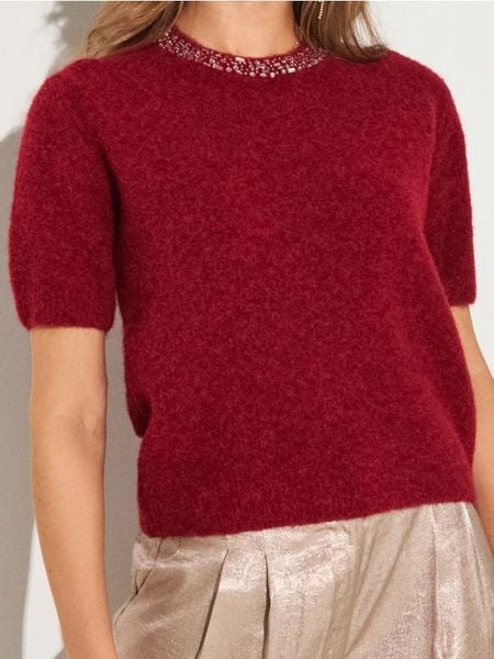 Sinsay – Bluzka swetrowa ze zdobionym dekoltem z domieszką wełny – czerwony –