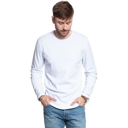 Męski longsleeve w kolorze białym. Charakteryzuje go regularny krój oraz długość do bioder.