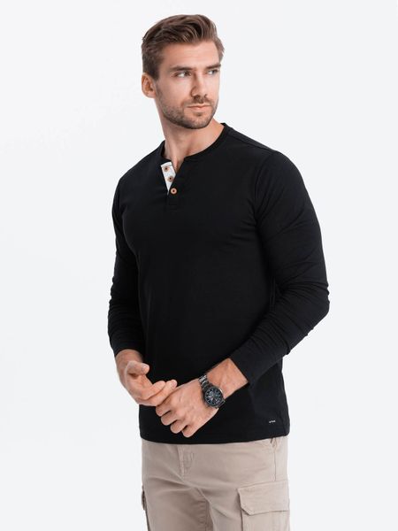 Longsleeve męski z guzikami przy dekolcie – czarny V4