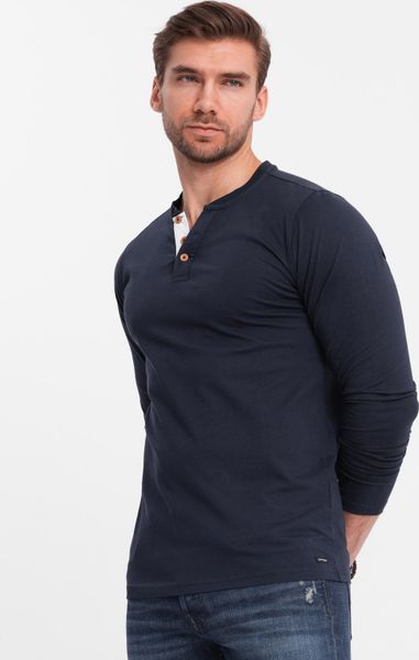 Ombre Longsleeve męski z guzikami przy dekolcie – granatowy V3 OM-LSCL-0107 L