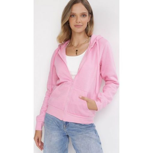 Różowa Bluza z Kapturem Zapinana na Suwak Bran
