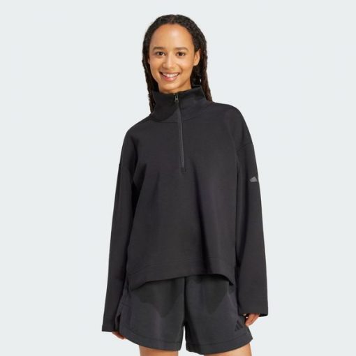 Luźny, swobodna bluza z krótkim suwakiem wykonana z miękkiego materiału dystansowego.