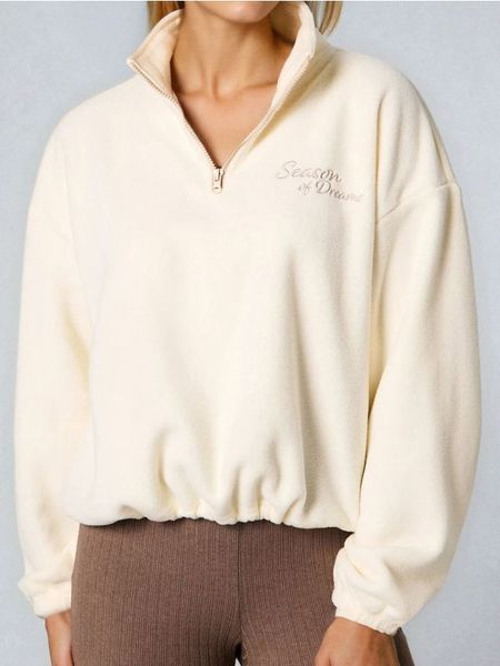Sinsay – Polarowa bluza z krótkim zamkiem i regulowanym stoperami dołem – kremowy –