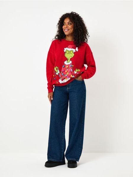 Sinsay – Bluza crewneck z motywem świątecznym – czerwony –