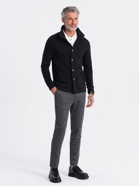 Męska bluza zapinana na guziki ze stójką casual – czarna V6
