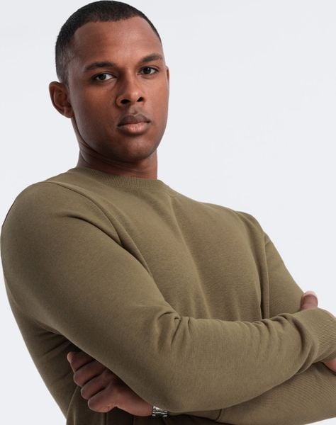 Ombre Bawełniana męska nierozpinana dresowa bluza BASIC oliwkowa V2 OM-SSBN-0159 S