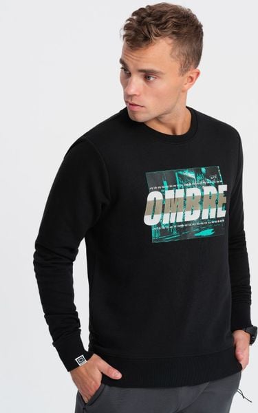 Ombre Męska bluza z nadrukiem zakładana przez głowę – czarna V3 OM-SSPS-0156 XXL
