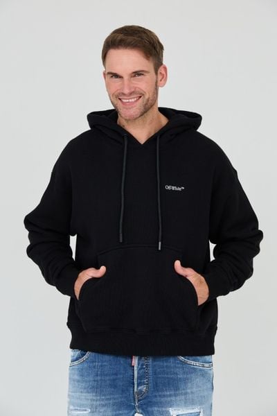 Czarna męska bluza z kapturem, wkładana przez głowę, marki OFF-White.Wymiary modela: wzrost: 190 cm, klatka: 107 cm, pas: 93 cm. Model ma na sobie produkt w rozmiarze M.