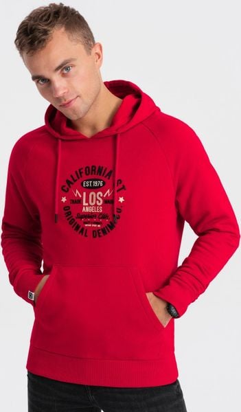 Ombre Bluza męska kangurka z nadrukiem – czerwona V2 OM-SSPS-0151 XL