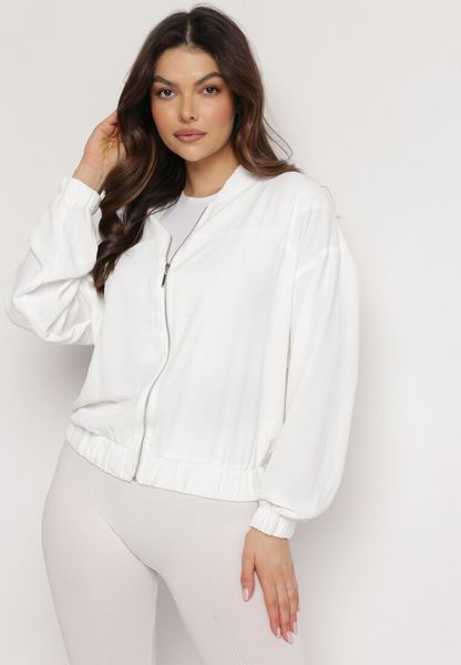Biała Bluza o Fasonie Zasuwanej Cienkiej Bomberki Ninoria