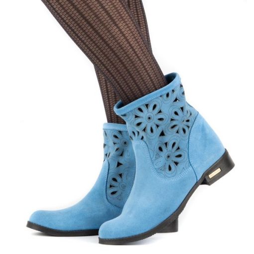 Olivier Wygodne botki ażurowe Alice niebieskie