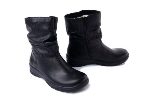 Botki damskie. Skórzana cholewka. Ocieplone futerkiem. Miękka, filcowa wkładka. Membrana RiekerTEX. Zapięcie na zamek. Wygodny koturn, elastyczna podeszwa.