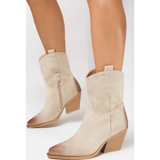 Beżowe zamszowe botki damskie beżowy