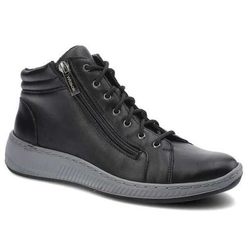 Czarne botki Wasak 0595 to ocieplane buty na zimę. Cholewka została wykonana z wysokiej jakości skóry naturalnej – licowa. Dodatkowego uroku dodają stylowe przeszycia. Wnętrze wykonano z materiału. Damskie trzewiki Wasak 0595 posiadają profilowaną wkładkę z filcu, który zapewni przyjemne ciepło w chłodniejsze dni. To modne buty ze skóry, które sprawdzą się w czasie codziennego […]