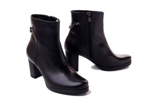 Botki damskie. Naturalna skóra. System SoftStep. Zapięcie na zamek. Wygodny, stabilny obcas typu słupek. Tęgość G.