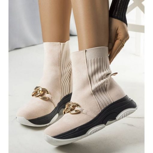 Beżowe ocieplane botki z łańcuchem Ulster beżowy