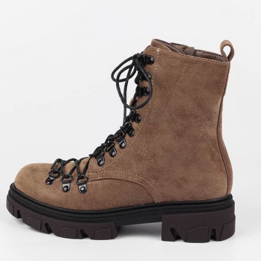 Brązowe botki damskie:są pełnowartościowe w I gatunkusą starannie wykonane oraz odznaczają się wysoką trwałościąplatforma: 4.5 cm – 2.5 cm Kolor: Brązowy zamsz GWARANCJA na 12 miesięcy