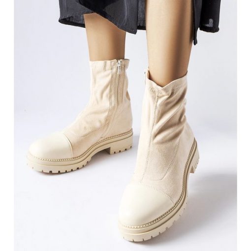 Beżowe skarpetkowe botki eko-zamsz Cigliano beżowy