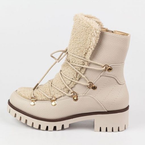 Beżowe botki damskie:są pełnowartościowe w I gatunkusą starannie wykonane oraz odznaczają się wysoką trwałościąwkładka i wnętrze jest ocieplone kożuszkiemspód: 4.5 cm – 2.5 cm, wysokość buta: 20 cm Kolor: Beżowy GWARANCJA na 12 miesięcy