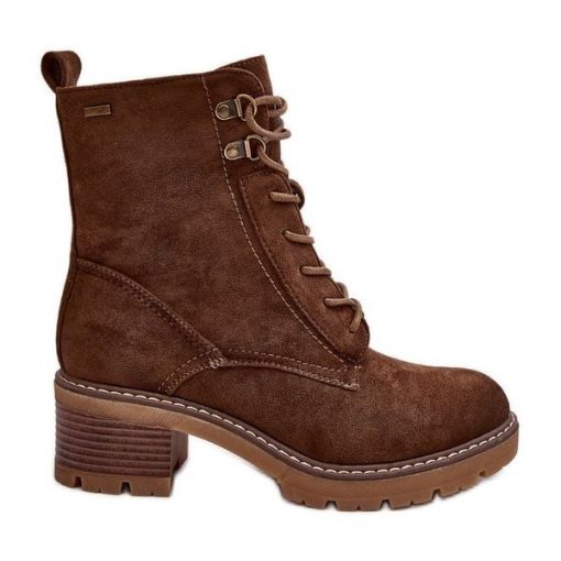 PS1 Damskie Botki Na Niskim Obcasie Sznurowane Brązowe Adinail
