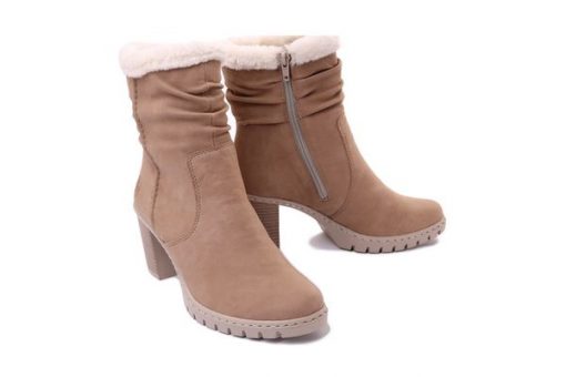 Botki damskie. Ocieplone futerkiem. Zapięcie na zamek. Wygodny, stabilny obcas typu słupek. Antypoślizgowa podeszwa.