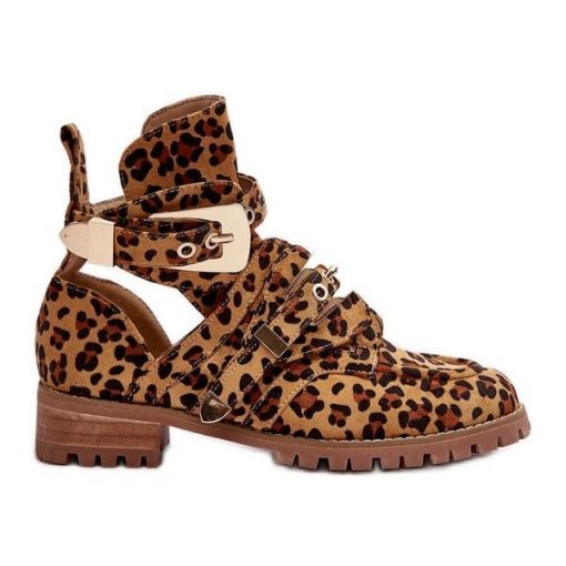 Lu Boo Zamszowe Botki Z Wycięciami Panterka Rock Girl brązowe