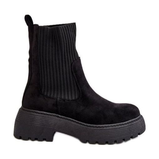 Zamszowe Botki Ze Skarpetą Na Platformie I Płaskim Obcasie Czarne Rewam