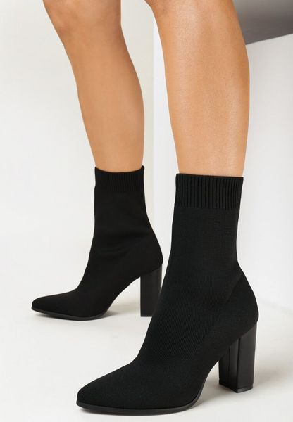 Czarne Botki na Słupku ze Skarpetkową Cholewką i Noskiem w Szpic Elorina