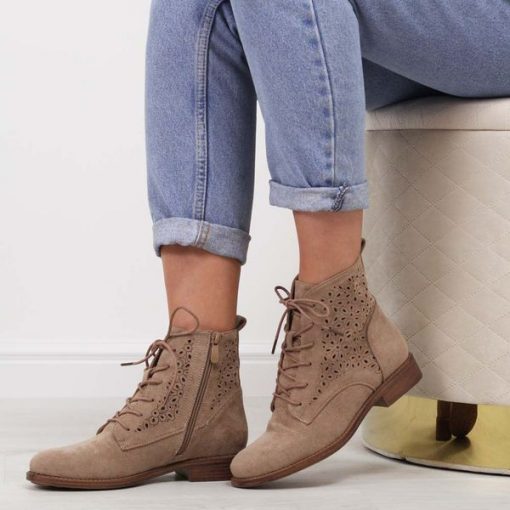 Beżowe wiosenne zamszowe ażurowe botki damskie S.Barski 136