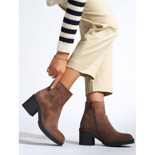 Brązowe botki damskie na słupku. Sprawdź na butymodne.pl! Botki damskie od Innej marki – must-have sezonu w świetnej cenie. Promocje oraz darmowa dostawa.