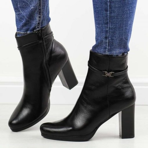 Czarne botki damskie na słupku M.Daszyński Sa125-22