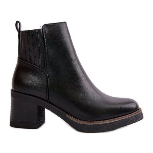 Ocieplane Botki Damskie Na Słupku Eko Skórzane Czarne Irittes